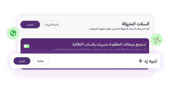 تفعيل سريع لخدمة واتساب من داخل لوحة تحكم زد، تساعدك تحوّلها إلى قناة تواصل رسمية لإشعارات الطلبات، السلة المتروكة، الحملات التسويقية، والمحادثات المباشرة، بإدارة موحّدة للرسائل واشتراك مجاني لأول شهر.
