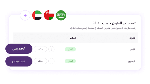 تخصيص متطلبات العنوان حسب دولة العميل أثناء إتمام الشراء، لتحسين دقة بيانات الشحن وتسريع التوصيل في دول الخليج ومصر.