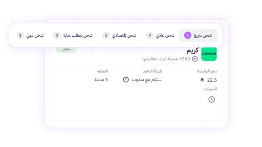سرّع تسليم طلباتك داخل المدينة خلال أقل من 3 ساعات، بخيار توصيل فوري عبر "كريم، برق" مناسب للشحنات الخفيفة وسهلة التحضير.