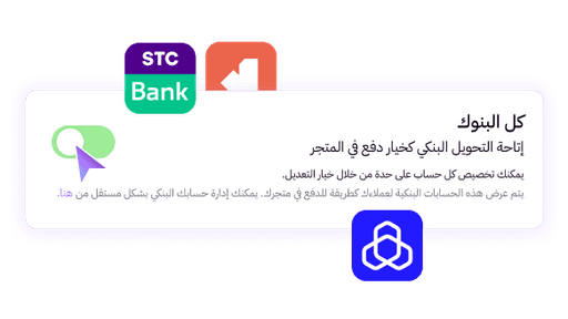 تحكّم بتفعيل أو إيقاف التحويل البنكي من لوحة تحكم متجرك، بدون حذف الحسابات البنكية أو التأثير على إعداداتك الحالية.