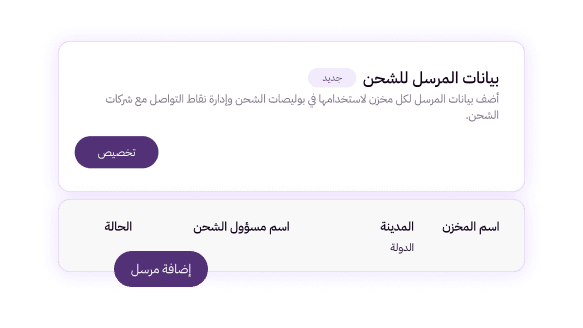 تحديث سهل وسريع للعنوان الوطني لكل مخزون مباشرة من لوحة تحكم متجرك، لضمان عدم تأخر شحن الطلبات.