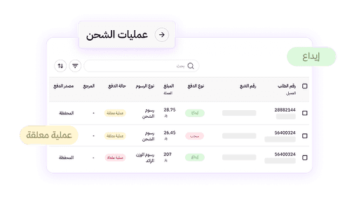 تابع كل عمليات الشحن المالية من مكان واحد — المعلّقة، المكتملة، والمسترجعة — مع ربط مباشر بالطلبات والشحنات، وتحديث فوري للسحب والإيداع بدون انتظار الفواتير.